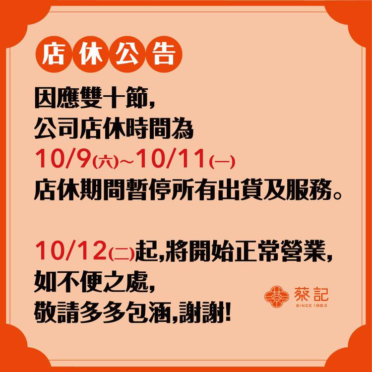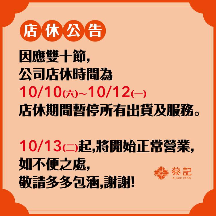 🌿 立冬進補,蔡記陪你過冬! 天氣變涼了~ 一碗熱呼呼的油飯配上麻油雞湯,就是最簡單、最幸福的補氣儀式🍁 🌟立冬限定 11/6–11/15|輕鬆開補🌟 🌿 暖心小資組 冷凍隨享盒油飯×2+冷凍麻油雞湯×1 原價$540 優惠$490 🏠 溫暖家庭組 冷凍隨享盒油飯×5+冷凍麻油雞湯×2 原價$1210 優惠$1080 不論是一人份的小確幸, 還是全家人的大滿足, 蔡記都幫你準備好了...
