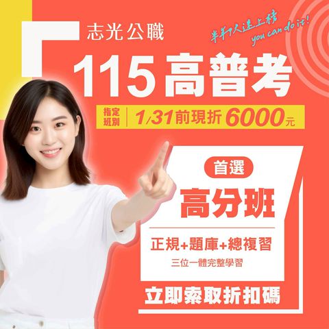 高雄志光:台灣口碑、品牌、成績最好的公職補習班,也是目前擁有最多上榜生的公職國考補習班! 以輔導考生上榜為最高目標 以提供完善服務為最大宗旨 歡迎國考生們加入高雄志光!