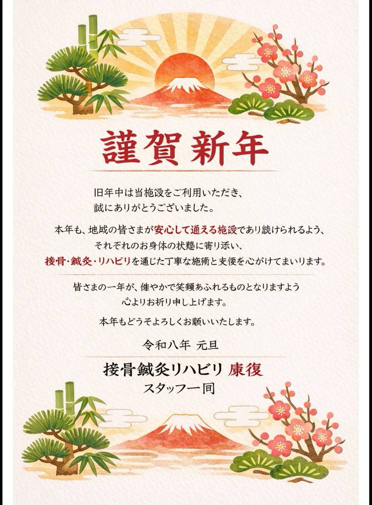 「接骨・鍼灸・リハビリ 康復」は関越道東松山インターチェンジのすぐ近く。 接骨(保険適応) は、急性期 の 骨折 脱臼 捻挫 打撲 肉離れ などの怪我 や スポーツ外傷 などが適応です。 鍼灸(自費診療)は、運動器疾患 はもちろん、自律神経失調症、婦人科疾患、偏頭痛、顔面神経麻痺 など様々な 疾患 や不定愁訴が適応となります。 また、リハビリ康復 は、機能訓練に特化した デイサービス です。介護認定を受けている方が利用対象となる施設です。