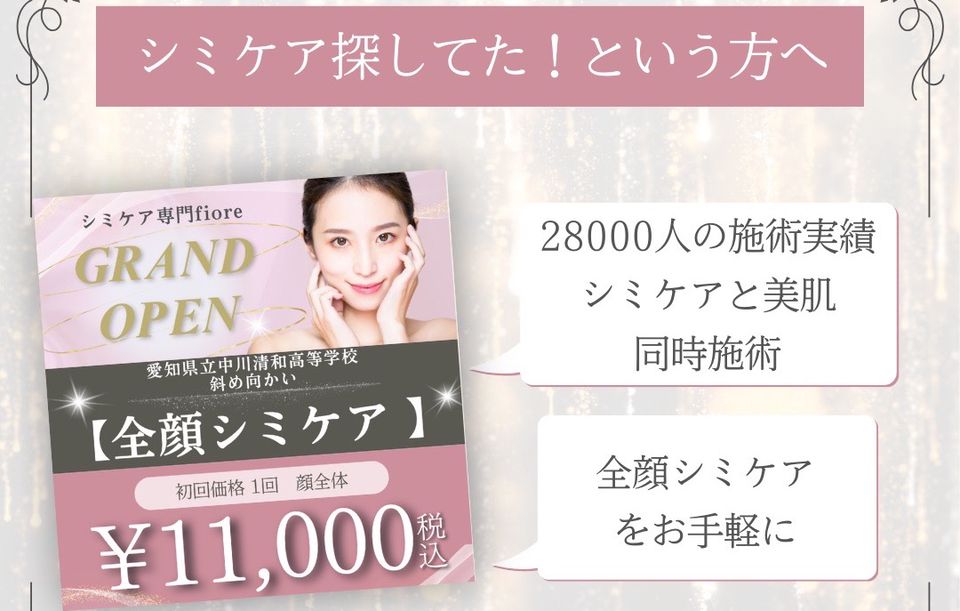 名古屋市中川区で大人の女性に人気のシミケアAMATERASU導入サロンです!まつ毛エクステ、眉Waxと同時施術可能です🥰