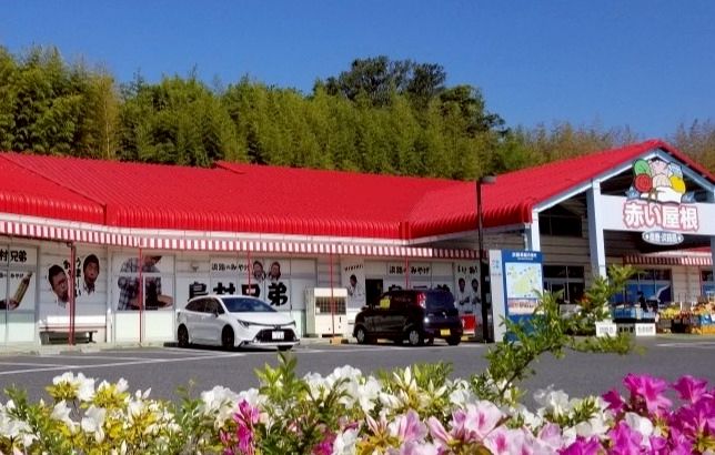 赤い屋根にておみやげものを販売しております。