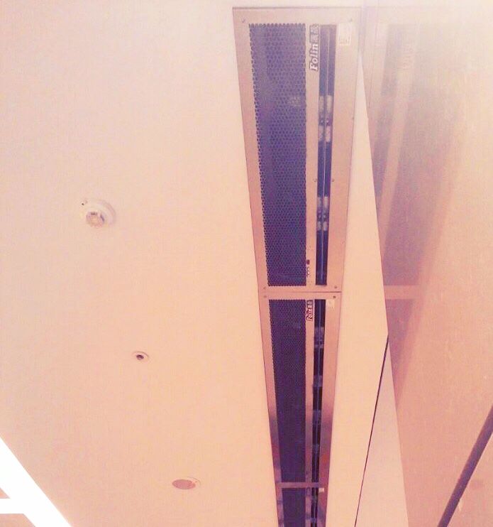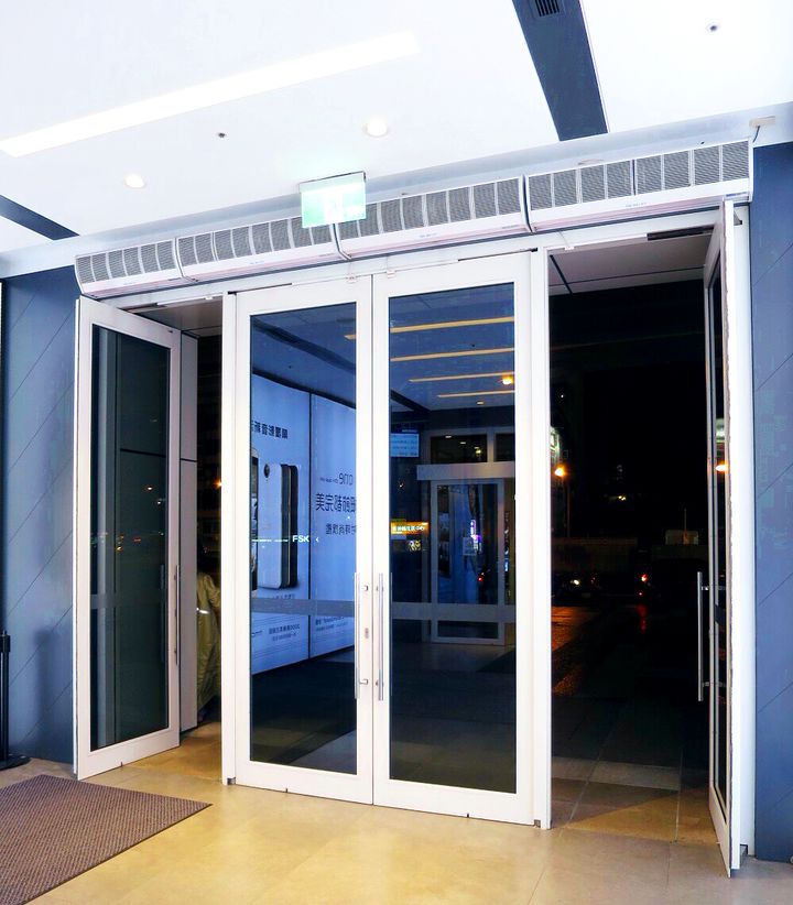 地點:家樂福賣場 機器:15系列貫流機, 白色烤漆, 流線型設計, 強弱兩速 效果:裝置在賣場出入口, 有效阻隔停車場廢氣進入賣場, 同時保留室內冷氣循環 Location: Carrefour Device: 1. Conversion 15 series 2. White body frame with streamline design, high/low speeds 3. Mac...