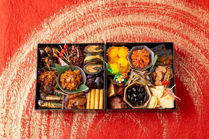 2025年お歳暮の新商品!人気の佃煮4種類と出汁パックのギフトセット!縁起の良い赤富士包み。佃煮はカップ入りなのでお皿に移す手間なし!