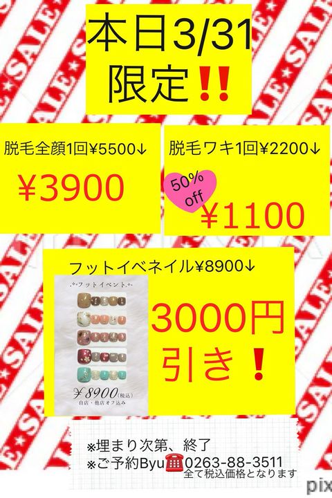 ネイルは安心の定額制のコースとなっております。仕上がりまでの金額が分かりやすく安心! ブライダルやオーダーチップなども承っております。 また、脱毛やエステのメニューもございます。 美を楽しめる空間を・・・ 美で豊かなLIFEを・・・ スタッフ一同、皆様のご来店、心よりお待ちしております。