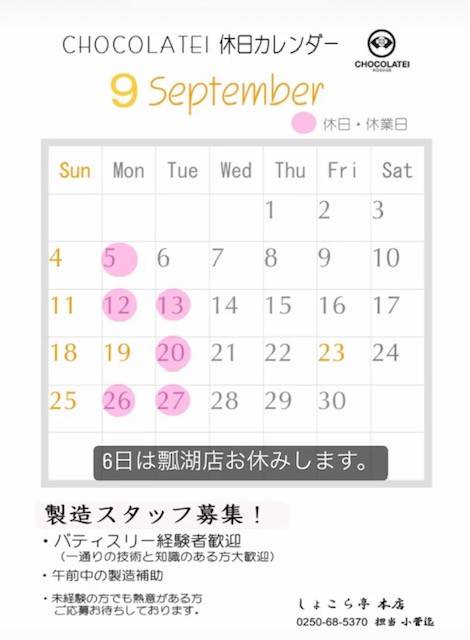 2月はバレンタイン期間の為 13日(月)、14日(火)は営業します☺ ※15.16日お休みを頂きます ※28日(火)瓢湖店はお休みになります 新潟伊勢丹6階のショコラモードは15日(水)まで開催されてます よろしくお願いします‼