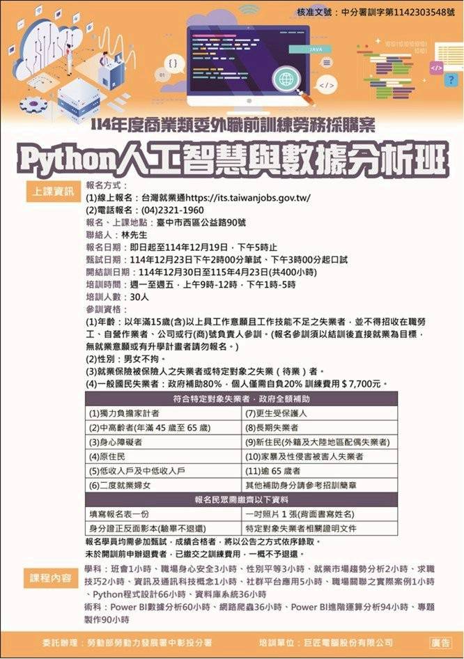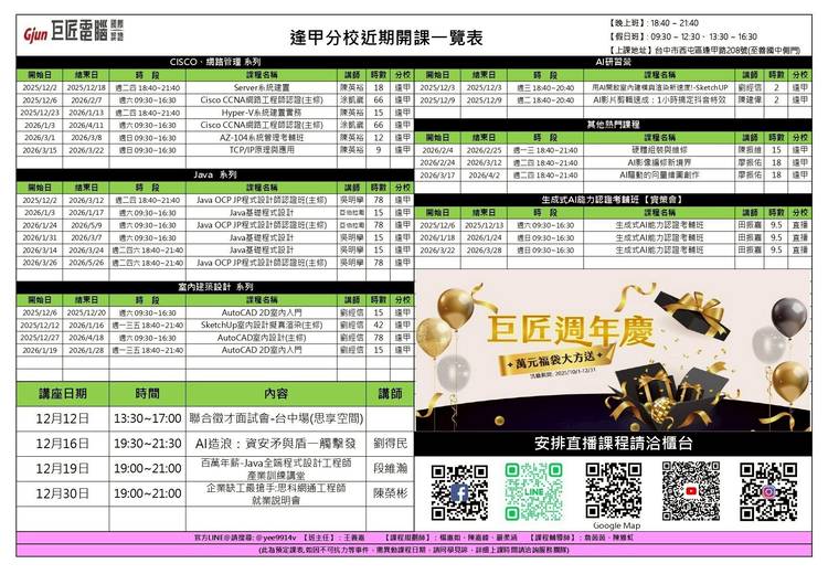 #徵的就是你!!!🫵 巨匠電腦以「幫助他人成功的志業」為使命 期望幫助學員在完成學業後順利就業! - 千萬不要錯過本次的大型徵才面試會, - ⏰時間:12月12日(五)下午1點~5點 📍地點:思享空間—203演講廳 (台中市東區公園東路130號 2樓) ✍️報名方式:請備妥履歷及作品集至分校櫃台報名 - 機會難得,一定要把握! - ⭐地址:台中市西屯區逢甲路208號 ⭐電話:(04) 2542...