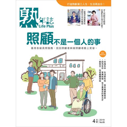 熟年愛閱讀! 現今45歲以上的族群,上有高堂下有子女,堪稱夾心族,更是家中的支柱,需要一本量身設計的專屬雜誌,《LIFE PLUS熟年誌》就是專為中高齡族群所打造的綜合性月刊。 這是國內第一本全面探討熟齡議題的生活月刊,內容涵蓋健康醫療、投資理財、退休規劃、休閒生活、人際關係、兩代溝通、旅遊移居等,全方位與您一同分享熟成人生的幸福滋味!