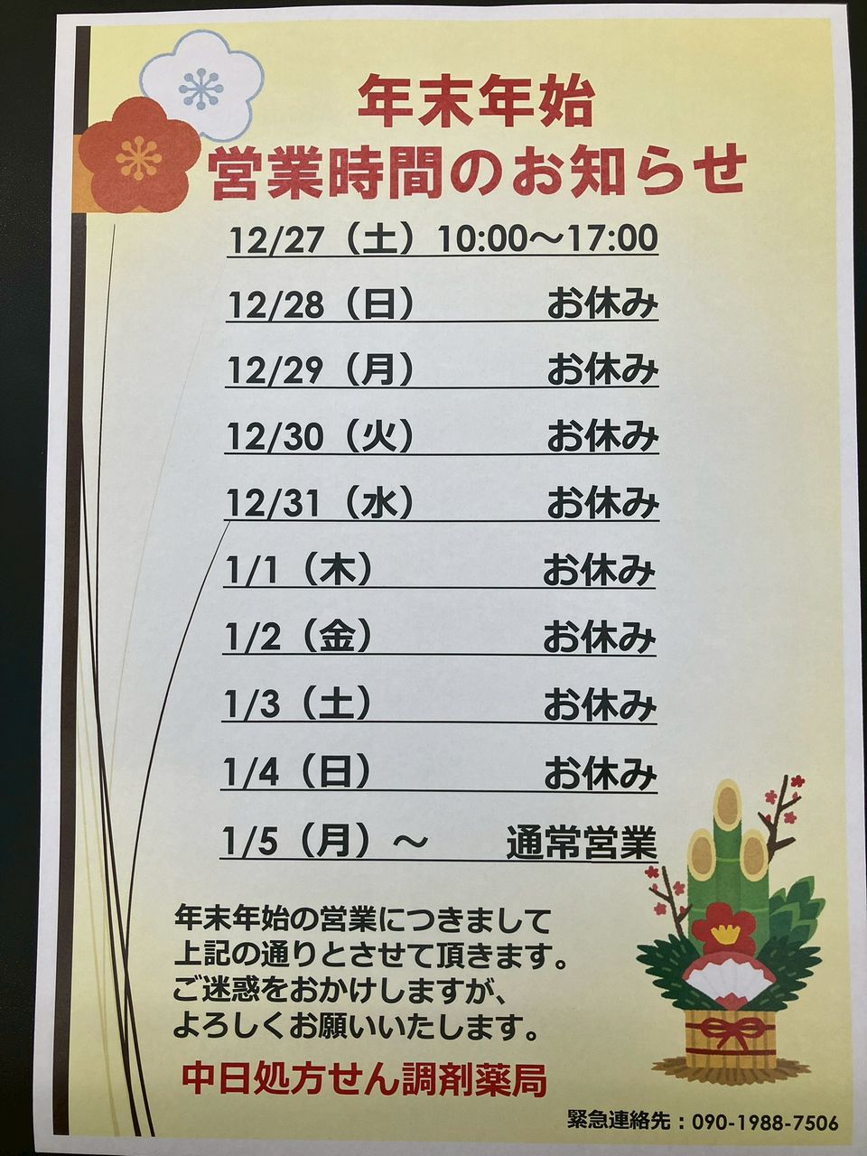 LINEでの処方箋受付は閉店30分前までです