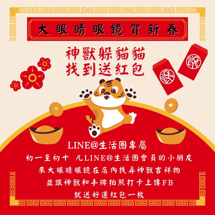 |大眼睛眼鏡|職人眼鏡 BiG Eyes Eyewear 新的一年 幫自己換個嶄新的氣象吧✨ 即日起至2/28 配鏡抽紅包折扣 『5000以下 抽紅包乙包 5001~10000 抽紅包兩包 10001~15000抽紅包三包』 (最高上限3包) .ᐟ.ᐟ人人都有機會抽中免單喔՞⸝⸝ᵒ̴̶̷ 𓈞 ᵒ̴̶̷⸝⸝՞ 即日起配鏡 於大眼睛眼鏡FB貼文下方按讚分享留言 📣抽 IPHONE1...