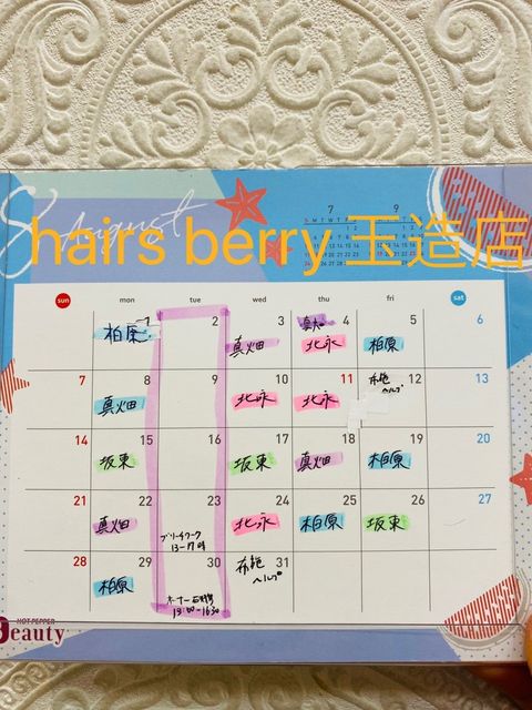 こんにちは! hairsBERRY玉造店です❤️ お得な情報をお届けしていきます! よろしければお友達もお誘い頂きご一緒にお越し下さい。 スタッフ一同心よりお待ち申し上げておりますm(_ _)m