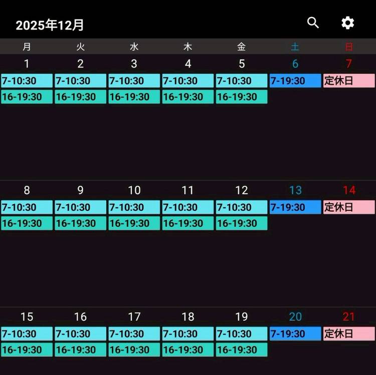 - Tue07:00 - 10:30, 16:00 - 19:30