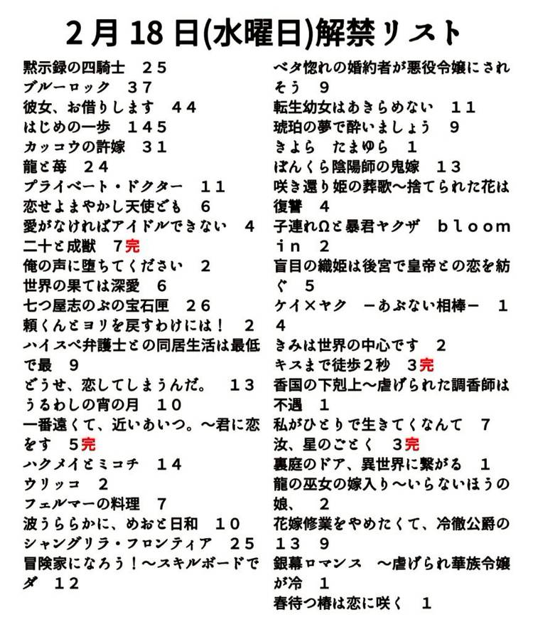 毎週水曜日に新刊解禁します