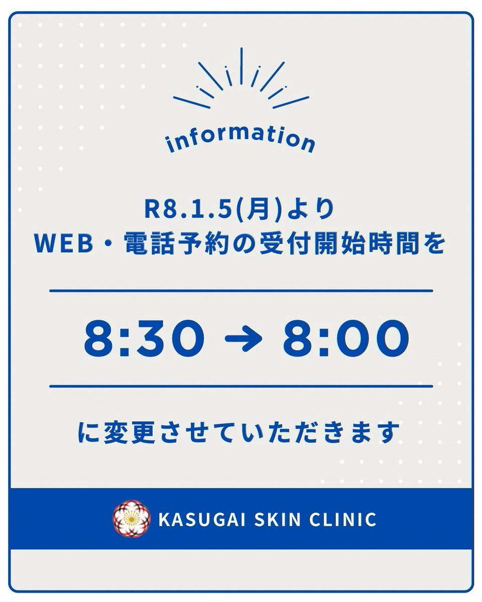 愛知県豊田市に2017年開院したかすがい皮膚科では、皮膚科一般診療、小児皮膚科、美容皮膚科をおこなっています。皮膚科専門医として適切な医療の提供ができるよう心掛けています。キッズルーム完備、待ち時間短縮のための取り組みをして地域の皆様に通っていただきやすいクリニックにしています。笑顔あふれるスタッフが皆様の来院をお待ちしております。来院の際はWeb予約を実施していますので、初診の方も再診の方もなるべくWeb予約をしてからご来院ください。