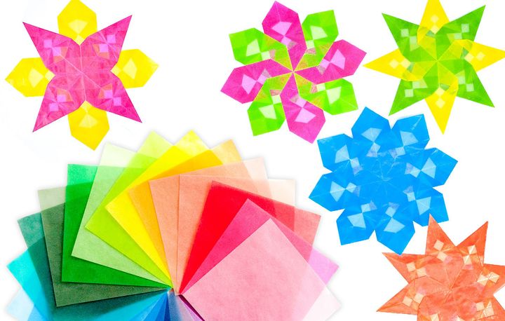 カラフルなグラシン紙はトランスパレントや折り紙、切り絵などで人気です