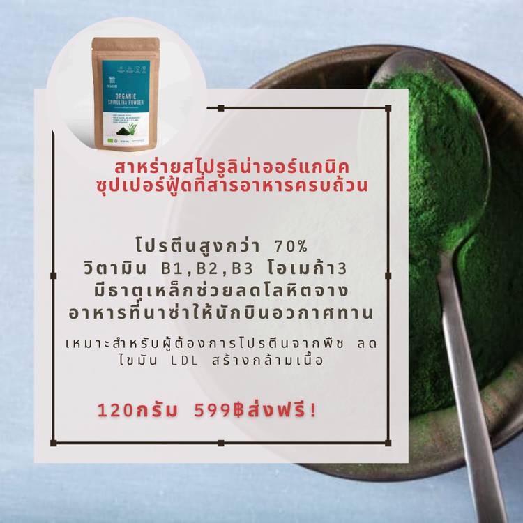ผงเคลออร์แกนิค 120gราคา 650 ฿ให้แคลอรี่ต่ำ 1 ช้อนชาเพียง 16.7 kcalธาตุเหล็กสูงมาก ช่วยบำรุงเลือดช่วยล้างสารพิษ ดีท็อกซ์ร่างกายอุดมด้วยวิตามิน A, B1, B2, C, K แคลเซียมสูงไขมัน 0% น้ำตาลต่ำ