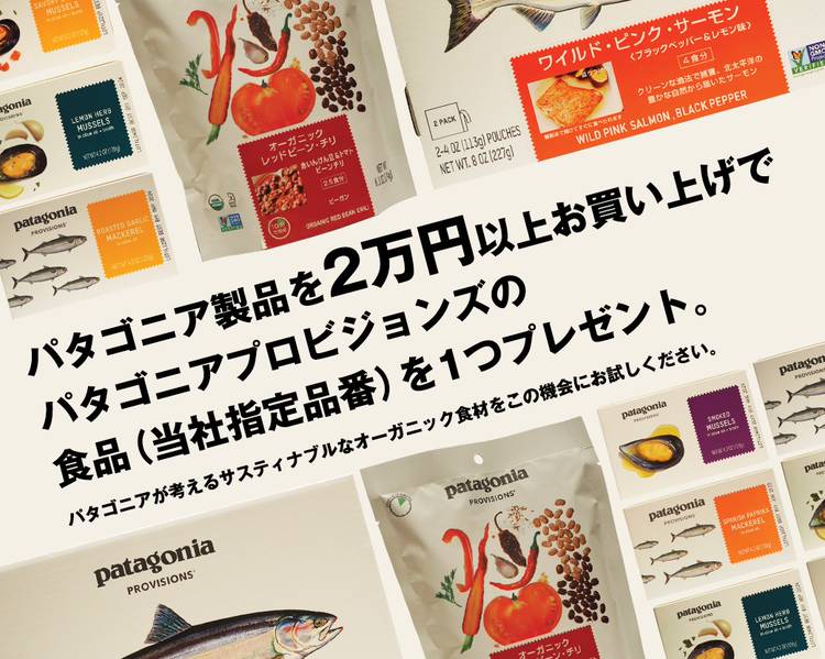 10/29(金)~11/11(木)の期間中、パタゴニア製品を税込み2万円以上お買い上げで、パタゴニアプロビジョンズの食品を1つプレゼント!