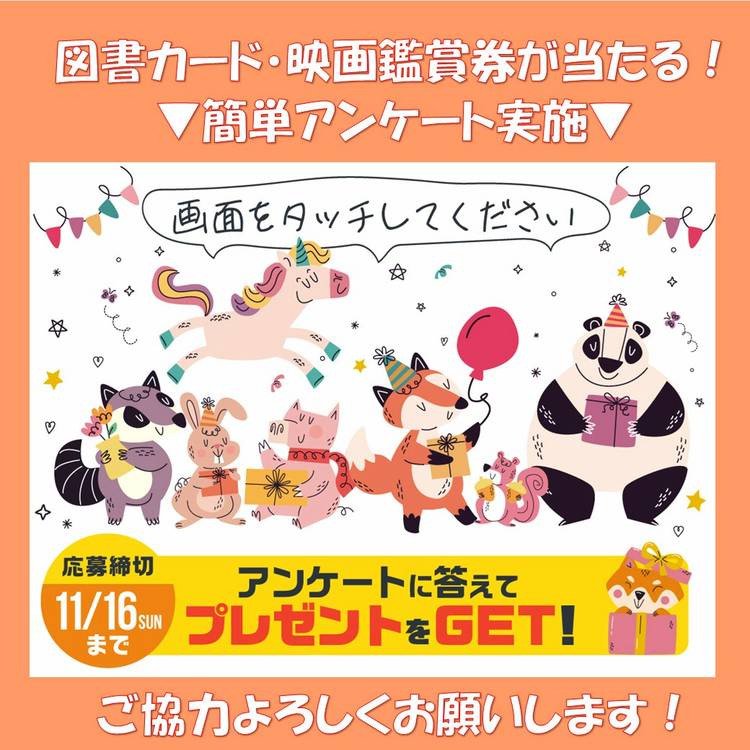 11/16(日)まで! 図書カード・映画鑑賞券が当たる! 簡単アンケート実施しております! ▼アンケート▼ https://docs.google.com/forms/d/e/1FAIpQLSdc2DIFWCru5SDhQR9hqnkxVPmZBBO2tuPXygd9XCwzUcxLwg/viewform?usp=header いつもジストシネマ田辺店をご利用いただき誠にありがとうございます!...