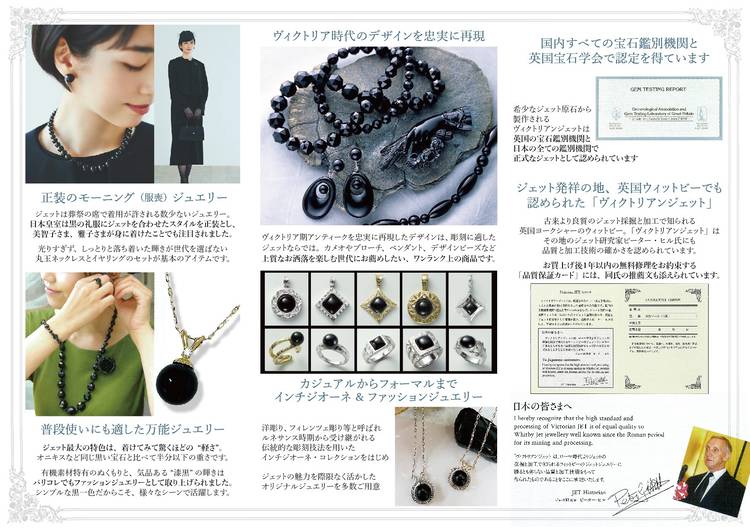 【GRAVIE明石店・ヴィクトリアンジェット】 10月6日(日)~7日(月) ジェットは紀元前から身に着けられた「人類最古の宝石」のひとつ。葬祭の席で着用が許される数少ないジュエリーで、日本皇室はジェットを葬祭時の正装とし、美智子さま、雅子さまが身に着けたことでも注目されました。1000年の時を経て甦った“幻の宝石”ヴィクトリアンジェットを、期間限定で販売いたします。 ※お客様に安心してお買い物...