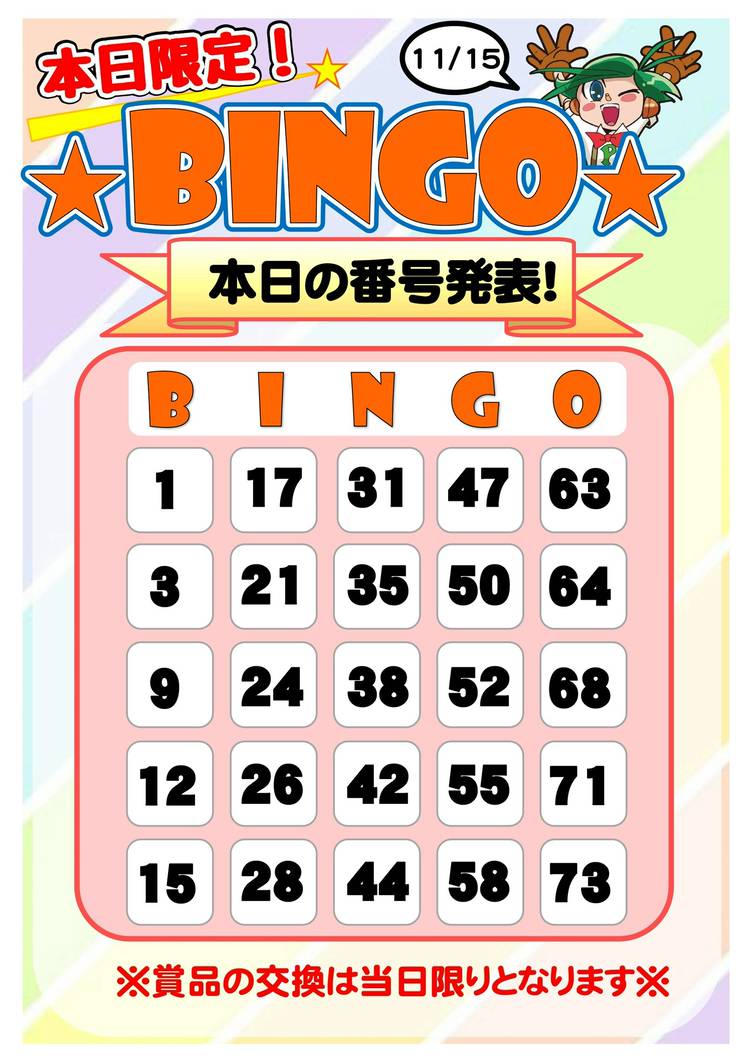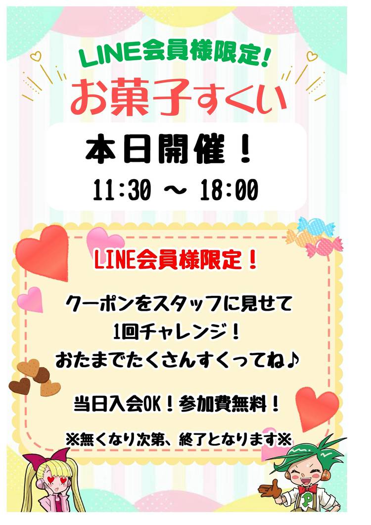 ピノッキースパティオ南岩国です♪ 本日のイベントのお知らせです。 本日はお楽しみくじの当選発表日です! 赤特賞はゲームソフト「スプラトゥーン3」 青特賞はメダル1000枚✨ その他にもフィギュアやぬいぐるみ、おもちゃなど色々な賞品をご用意しております! 発表は開店時間の9時から当店カウンター前にて発表となります。 さらに本日は15時から🎃ハロウィンイベント🎃も開催! 遊びに来てくれた小学生...